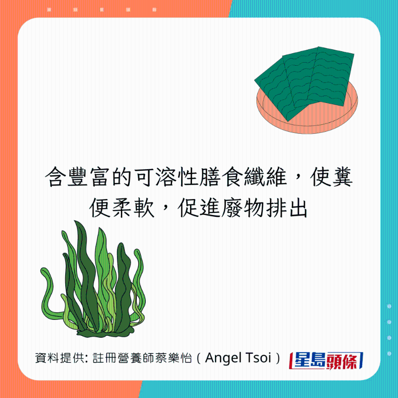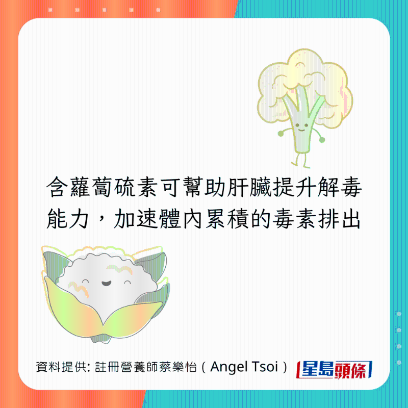 Angel推介12種食物養肝排毒,并列出6大不同功用,可以為腸胃進行大掃除:
