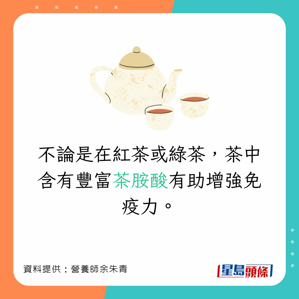 冬天容易傷風感冒,加上新冠肺炎侵襲,須提升自身免疫力。飲茶、吃番薯也可增強抵抗力?有營養師指,有13種營養素可有效增強免疫力,抗炎殺菌、保護腸胃。要強身不一定要吃營養補充劑,她列舉26款天然食物,從日常飲食入手,幫助大家遠離病菌病毒,預防感冒、流感、新冠。