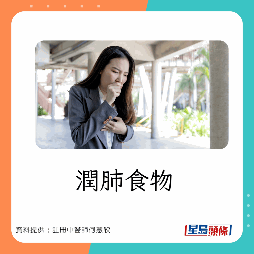 本港注冊中醫師何慧欣曾發文在其facebook專頁表示,冬天紓緩干燥癥狀,建議大家多選擇白色、入肺經的食品,中醫認為肺主皮毛,滋潤肺部的食物也可以滋潤我們的肌膚。