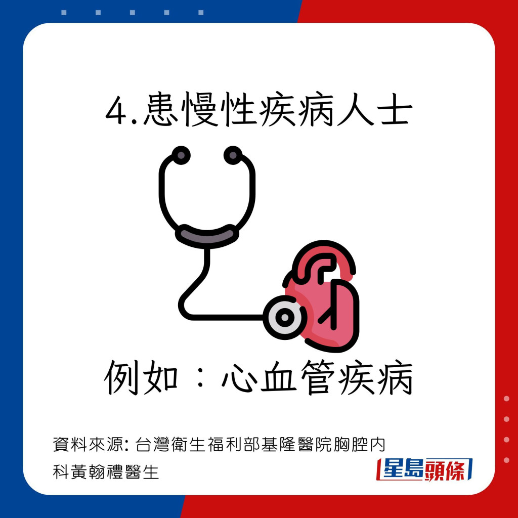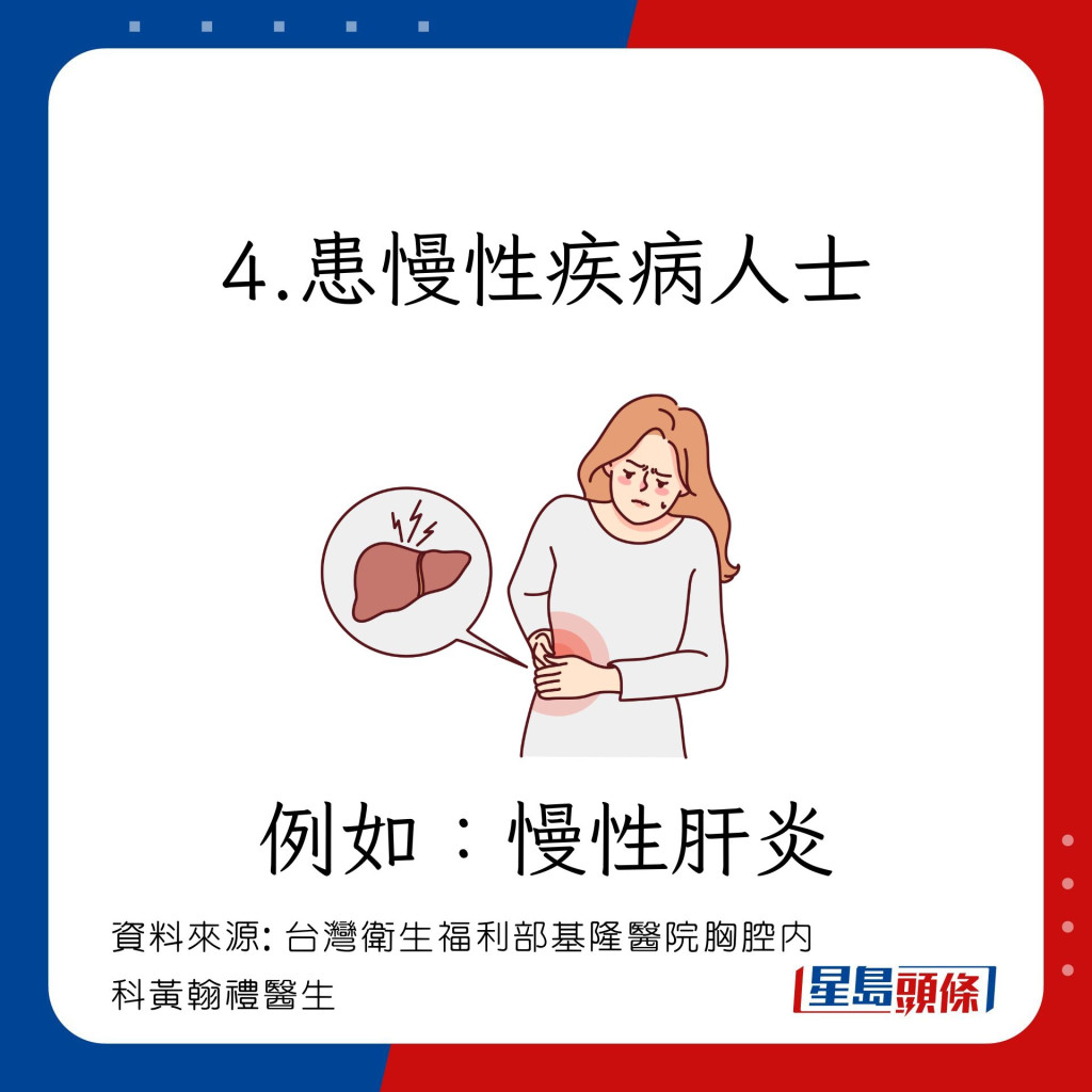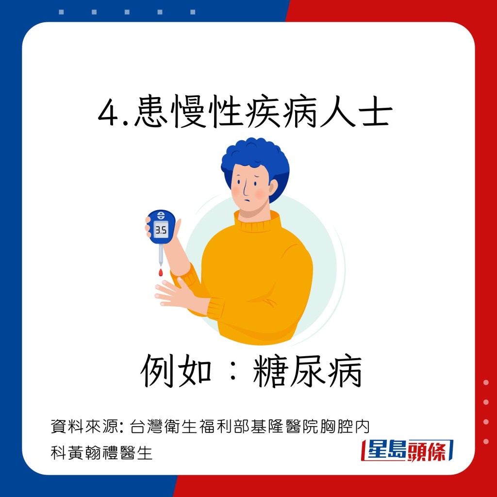 他指出在感冒季節期間,以下5類人不可對感冒掉以輕心,否則可引發輕度或重度的肺炎: