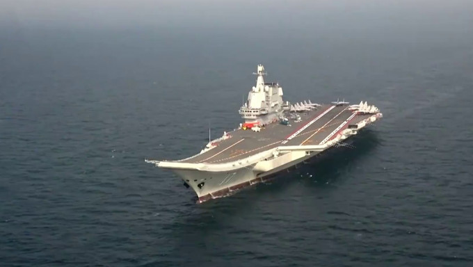 山東艦編隊訓練畫面顯示,時間在隆冬時節,地點南海某海域,由多艘不同型號艦艇、數十架各型戰機組成的山東艦編隊在此擺兵布陣。
