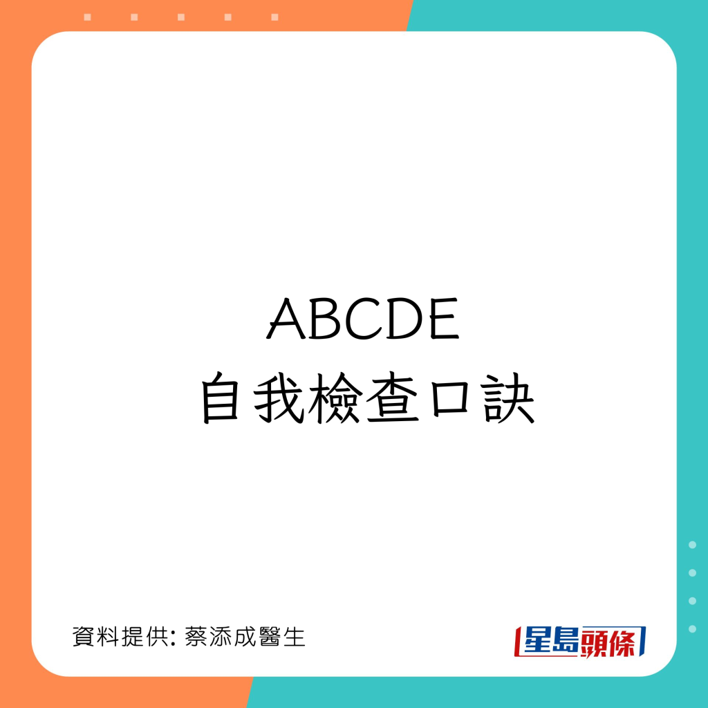 香港臨床腫瘤科??漆t生蔡添成曾撰文,教透過“ABCDE口訣”自測皮膚癌癥狀: