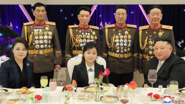 ▲圖為金主愛(中)出席北韓人民軍建軍75周年活動。摘自朝中社