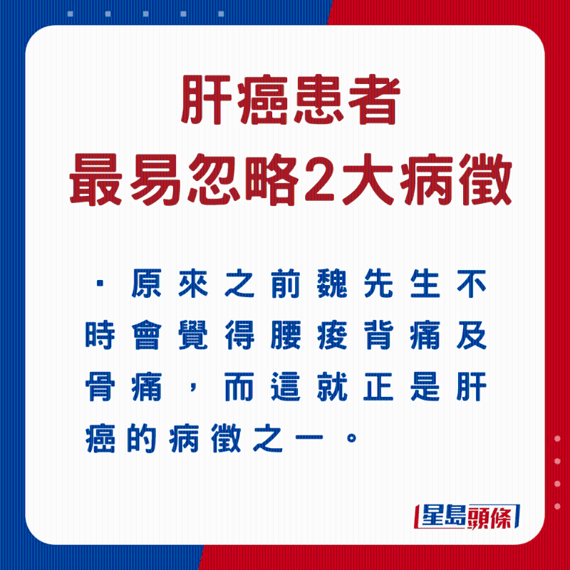 潘冬平教授指出,因肝臟有自我修復能力,即使剩下小部分仍可正常運作,故早期肝癌病征不明顯。