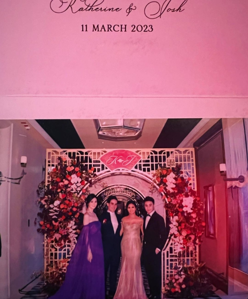 已故賭王何鴻燊四房兒子何猷君2019年與超模奚夢瑤結婚,同年10月誕下大兒子何廣燊(Ronaldo),前年11月再添女Romee。 二人結婚3年多以來恩愛如昔,周日(12日)更一同盛裝出席護膚品牌Estée Lauder創辦人曾孫Josh Lauder與太太Katherine Chan的香港婚宴,同場還有何超欣、林建岳女兒林恬兒、“股神”巴菲特孫媳婦Lili Buffett等。 相隔一日,奚夢瑤近日于社交網貼出宴會合照,豈料即傳出懷孕消息!