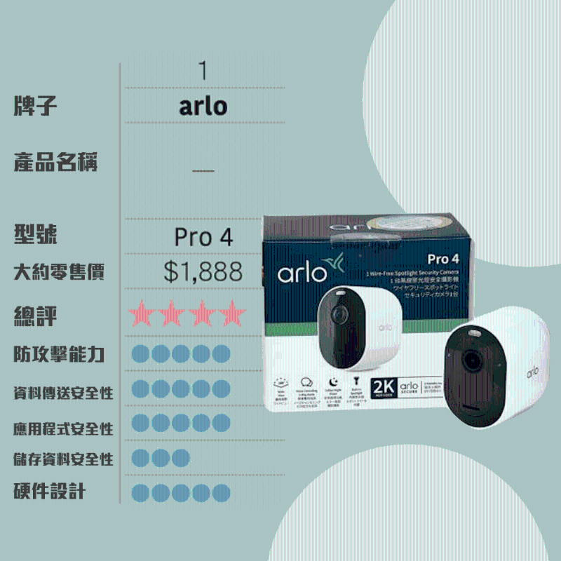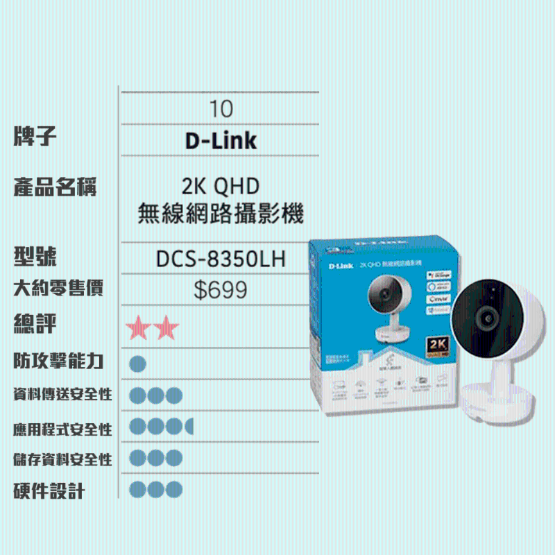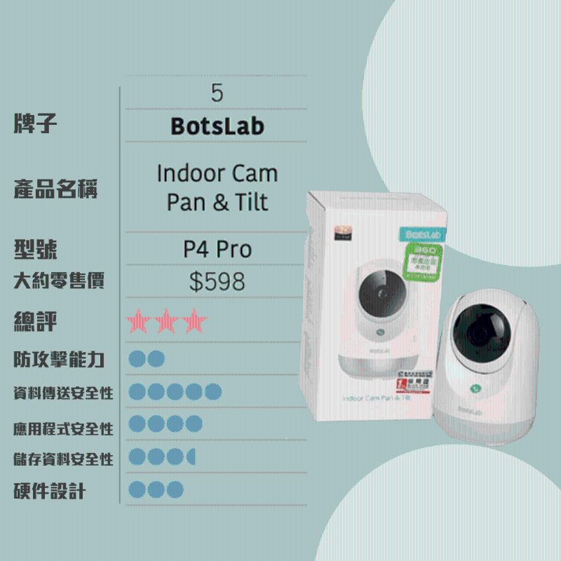 是次測試的10款家居監控鏡頭樣本,包括arlo、小米、imou、TP-Link、BotsLab、eufy、SpotCam、EZVIZ、reolink,以及D-Link, 售價介乎$269至$1,888。全部樣本均提供雙向語音對話、移動偵測、夜視、Amazon Alexa 及 Google Assistant語音控制等功能。當中9款的安全隱患包括沒有以加密方式傳送影像和資料、未能防御駭客以“暴力攻擊”(brute force attack)方式破解密碼等。