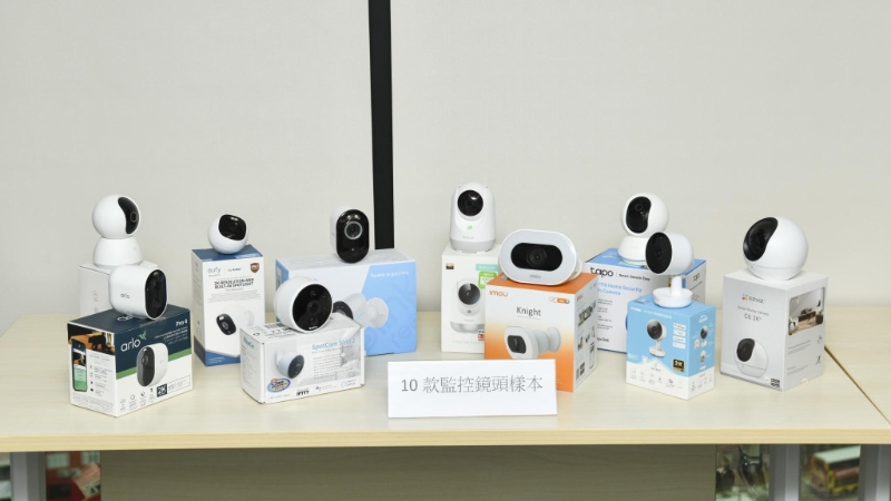 ▲測試的 10 款家居監控鏡頭樣本,售價介乎$269 至$1,888。消委會提供