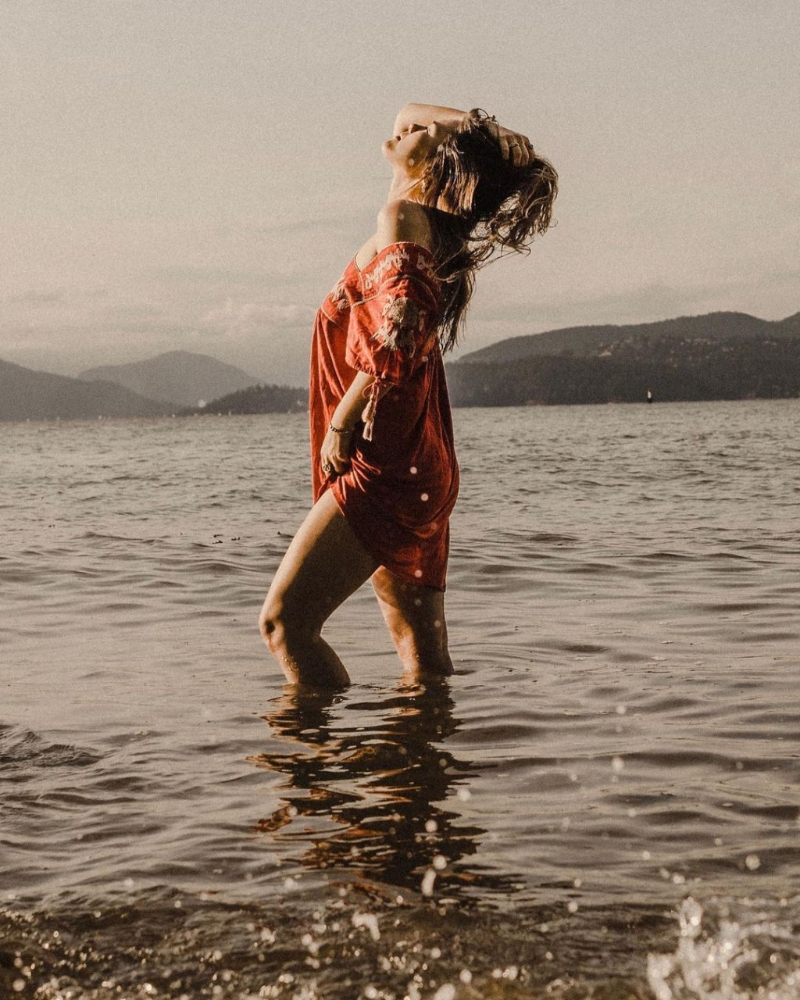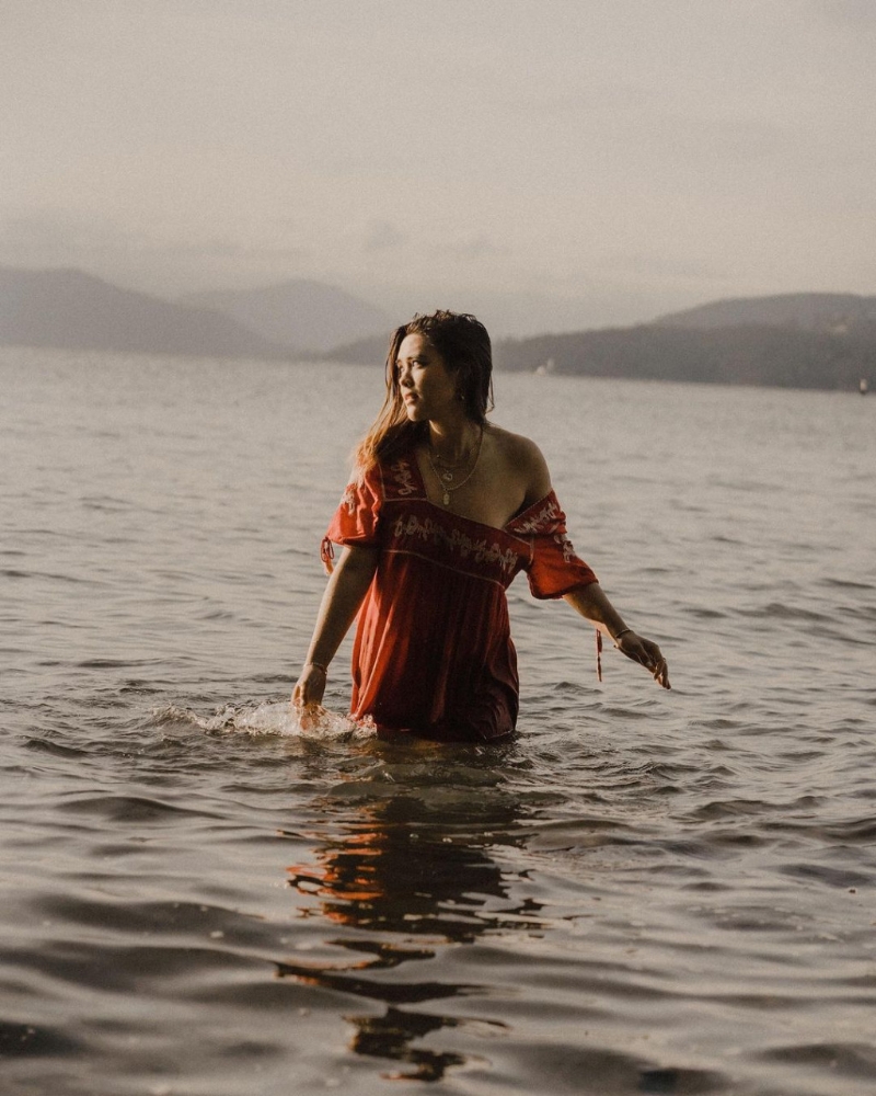 最近天氣回暖,張敏鈞日前已迫不及待進行下水禮,并以英文寫道︰“Today's sunny warm weather has made me impatient for summer.(今陽光普照的暖天氣,令我好心急想夏天快點到。)”雖然本次未有換上比堅尼,但穿紅色民族風短裙的她在水中玩到濕曬身,其間除拉起裙擺露出“蜜大腿”外,疑似真空上陣的張敏鈞手袖更一度滑落變跌膊裝,令左胸差點泄春光,非常牙煙!