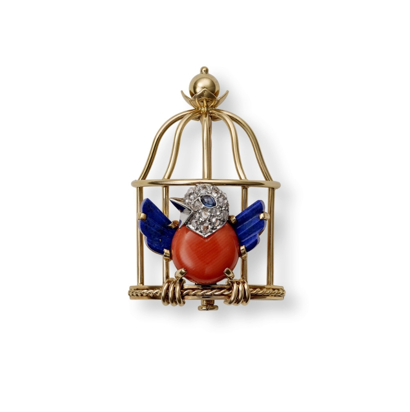 ▲自由鳥胸針??ǖ貋啺屠?,1944年。金、鉑金、鉆石、藍寶石、青金石、乳石??ǖ貋喌洳?。Vincent Wulveryck, Collection Cartier ?Cartier