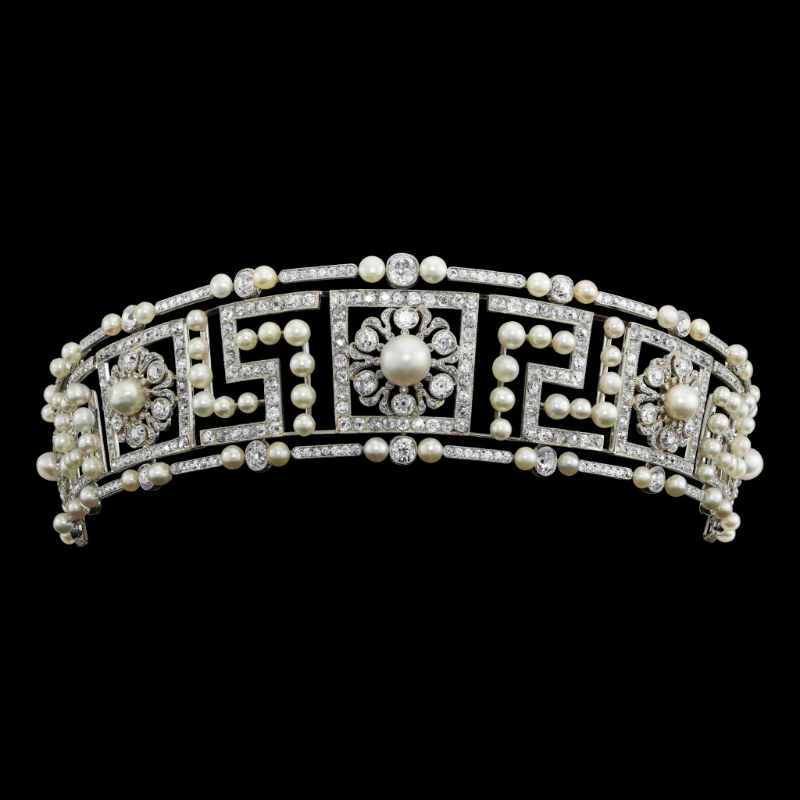 ▲冠冕??ǖ貋啺屠?,1906年。鉑金、鉆石、天然珍珠。演員劉嘉玲惠借。Marian Gérard, private collection ?Cartier