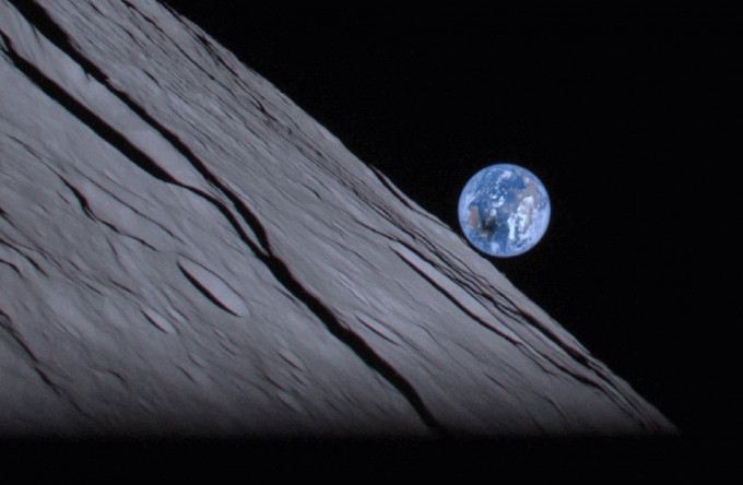 上星期的混合日食發生時,“白兔號”從太空拍一張地球的照片,是月球影子在南太平洋上移動的過程。