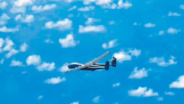國防部昨表示,27日上午6時至28日上午6時,國軍計偵獲共艦6艘、共機38架次于臺灣周邊??沼蚧顒?,其中有19架次進入西南、東南及東北空域,最特殊的是,一架目前解放軍最大型TB-001型無人機,首度從西南空域進入后,一路逆時鐘方向繞臺一圈。