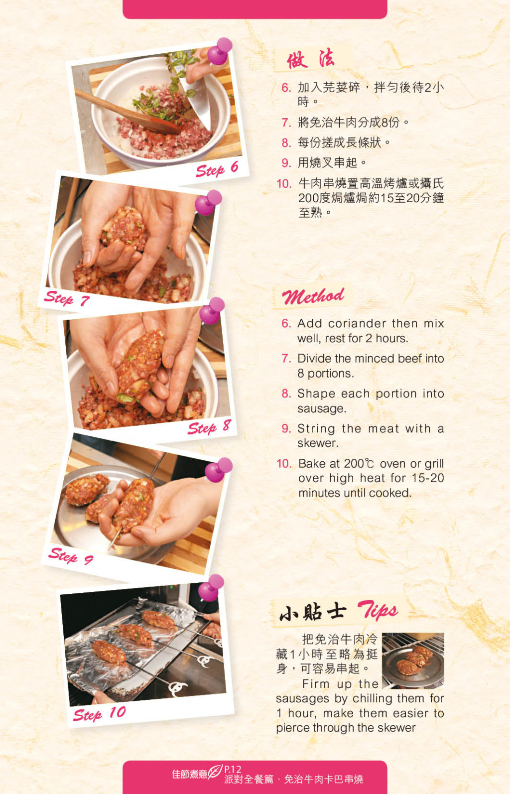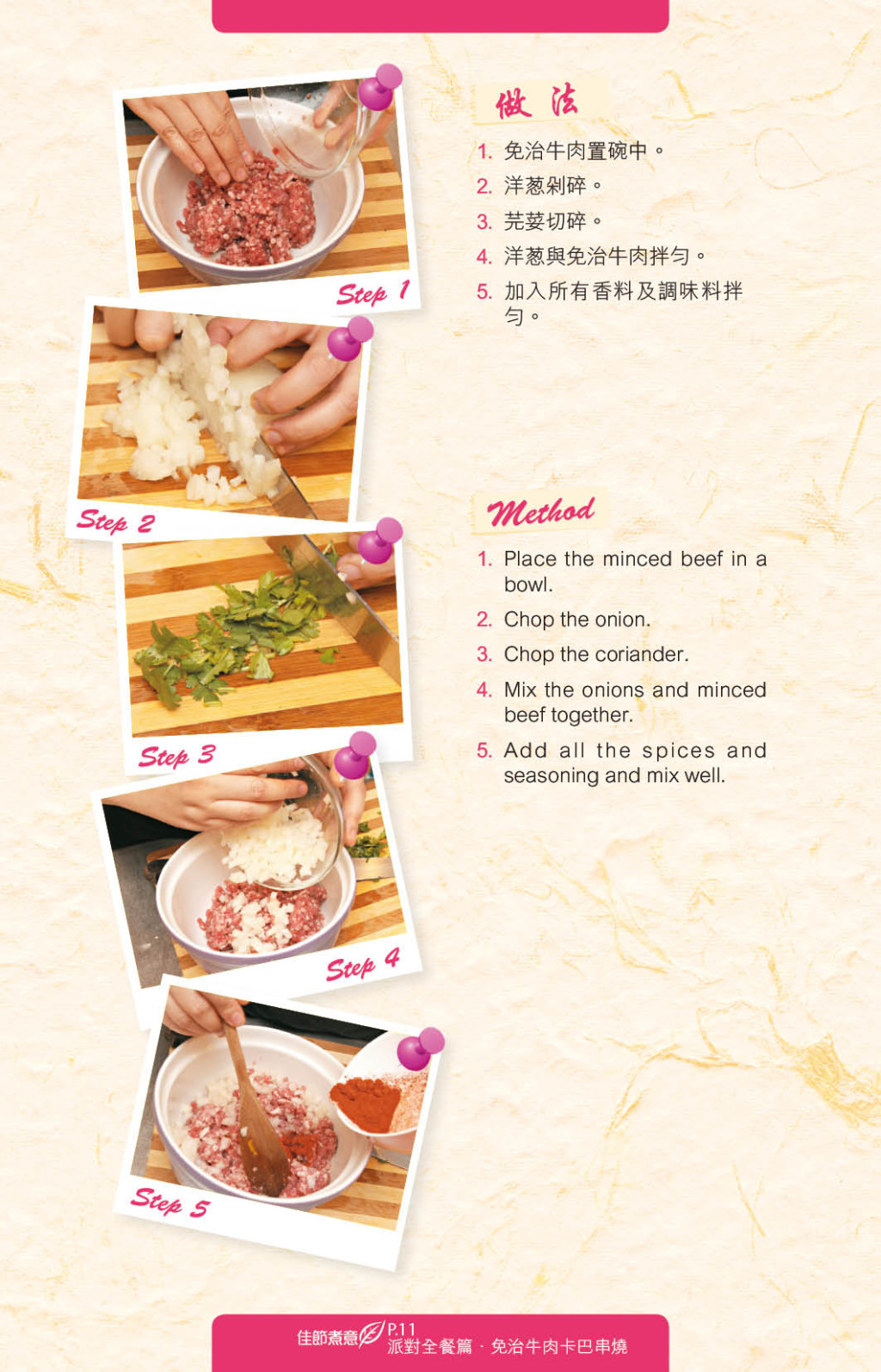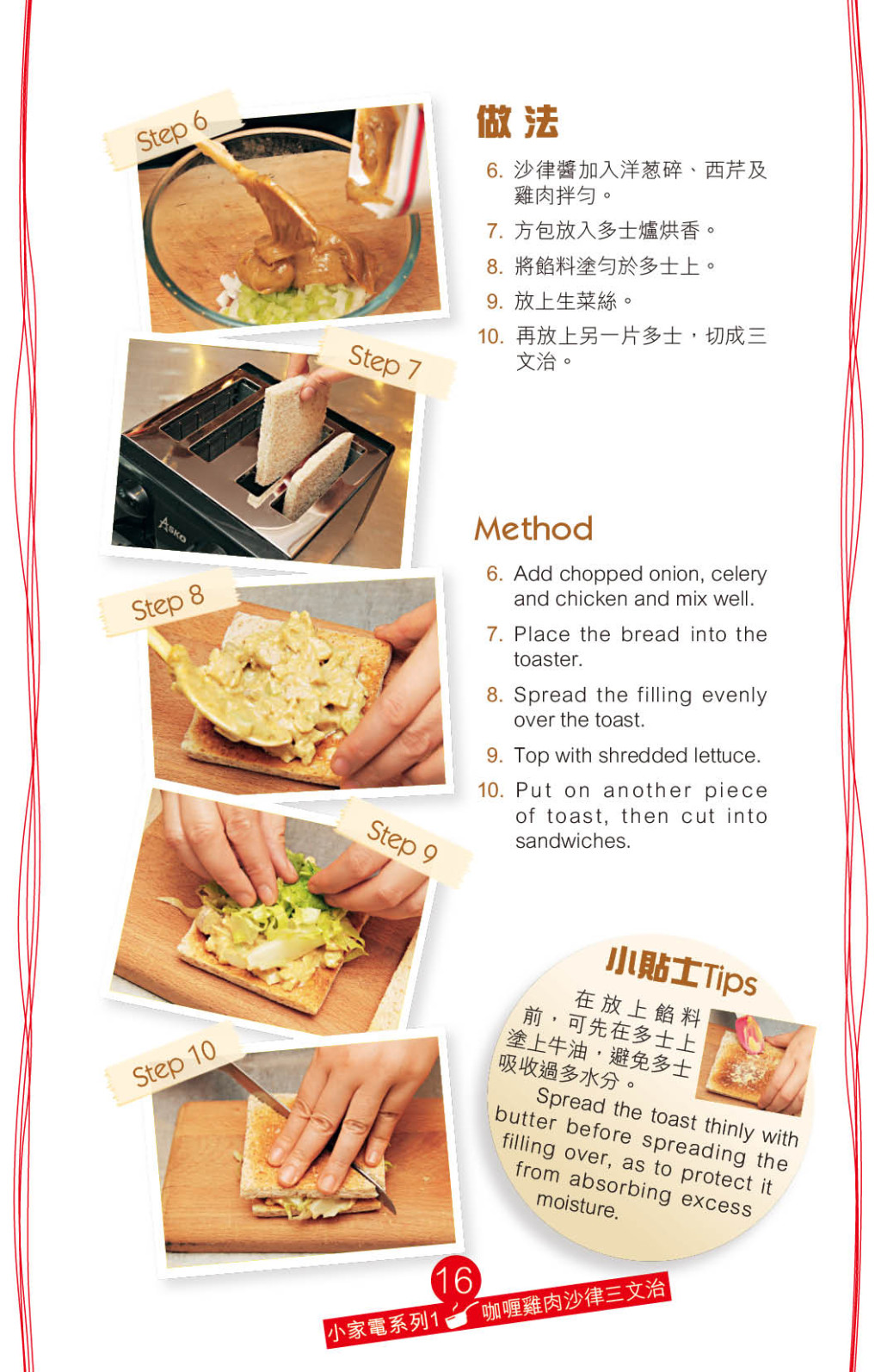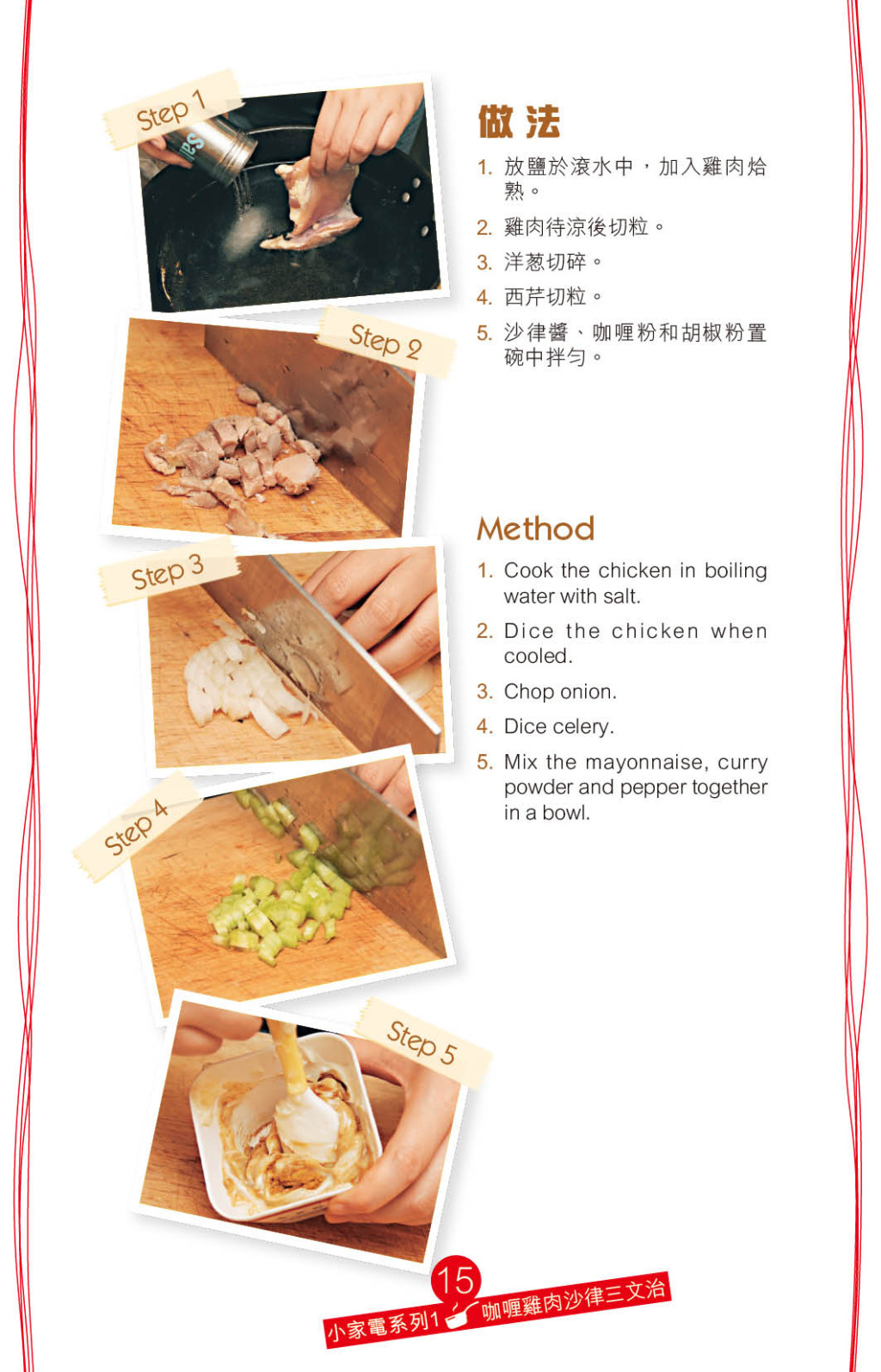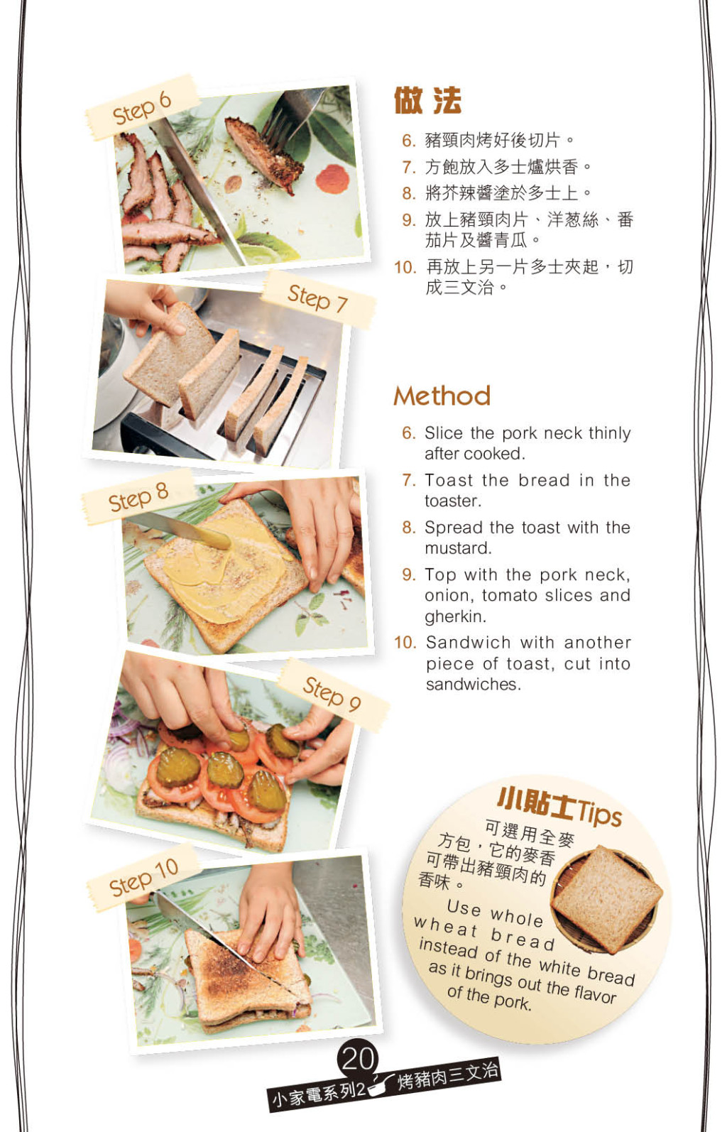三文治餡料千變萬化,非局限于火腿、雞蛋、芝士等常用食材,今日教大家做的“咖喱雞肉沙拉三文治”、“烤豬肉三文治”,選用鮮肉炮制,并加入不同的醬料、配料調味,味道濃郁又營養豐富。另一道“明治牛肉卡巴串燒”入口都是肉,烤至香口美味,可作小食、伴飯或面條。
