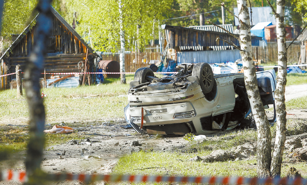 ▲普里列平的座駕遇爆炸翻倒。