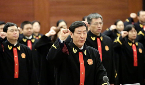 ▲沈德詠曾身穿法官制服帶領最高法院法官宣誓。中新網