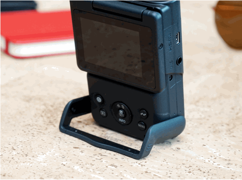 外形有別傳統相機的PowerShot V10,機身體積不過流動充電器大小,211g重量更加只比iPhone 14 Pro重5g,輕巧程度可以放進男士褲袋,又或女士們的小手袋,整天帶著不成問題。正因機身輕便,PowerShot V10可讓拍友單手握機輕松操作,甚至手腕一轉即由橫度變作直度,再按下機面的快門/錄影掣,隨之影相拍片。想要自拍,只要將2吋LCD芒向上翻出,又可以輕松取景。若然要把相機固定,釋放雙手拍Vlog或開Live,PowerShot V10考慮周詳,機身內置一體式腳架,拉出來可當底座,令相機座枱放置之余,還可以調校前后30度的傾斜角度。