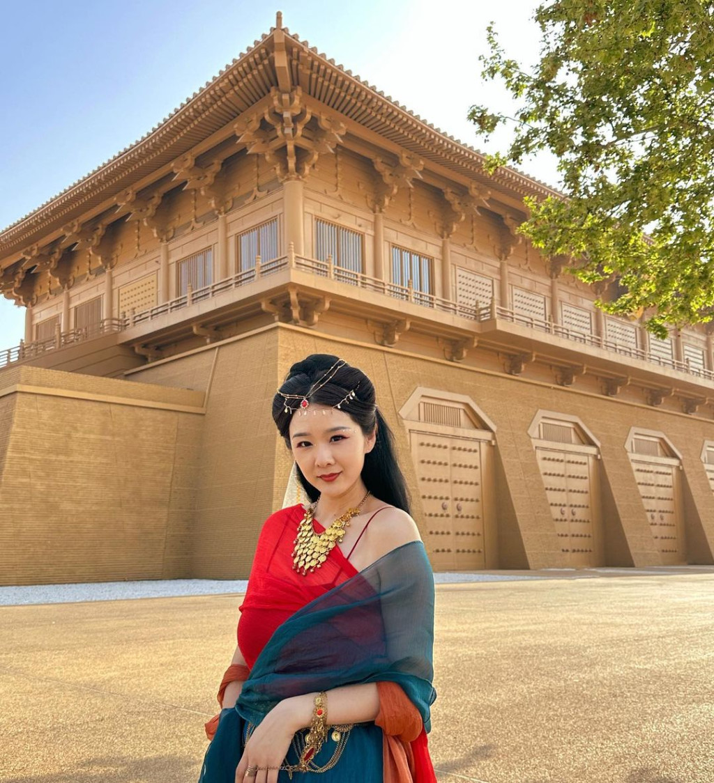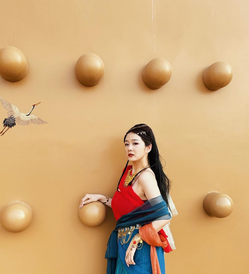早前孫雪祺出發到西安旅游,其間不忘在多個景點打卡留念,當中她穿上短裙及黑絲大曬美腿,惹火造型獲網民大贊越來越漂亮之余,更有人指她"終于找到流量密碼"。之后,接了長發的孫雪祺換上鮮紅"肚兜"加藍色長裙,化身"古代西施",她寫道:Indian or Chinese style #ootd(印度風還是中國風)。