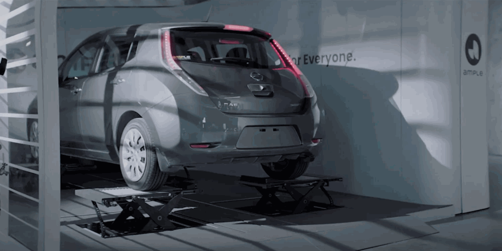 ▲電動車要使用Ample換電服務,須換上專用的模組化電池。