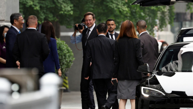 ▲馬斯克今日與商務部長王文濤及工信部長金壯龍會面。路透社