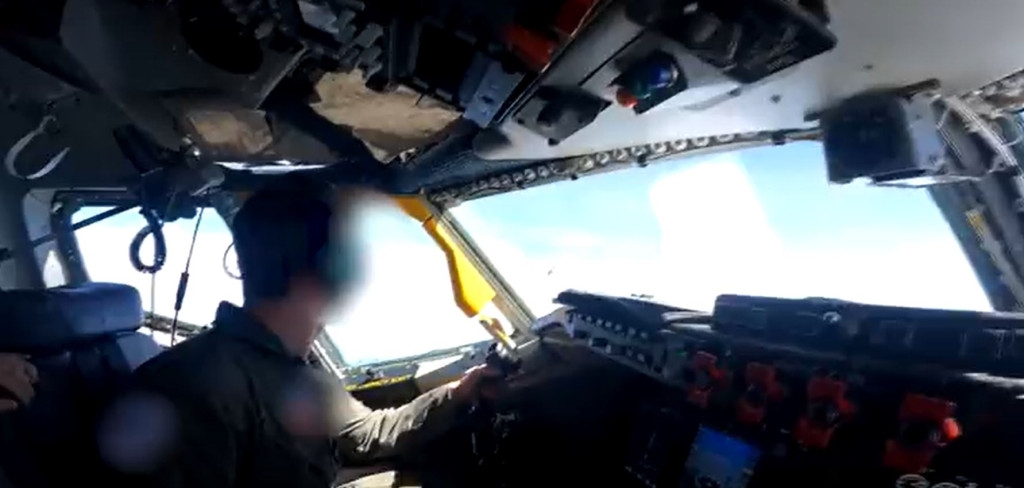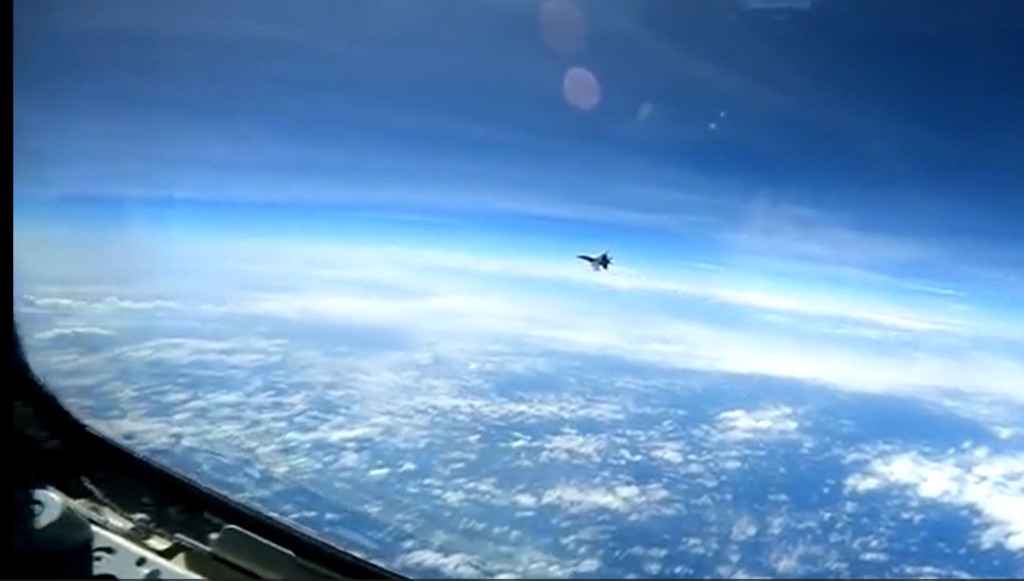 ▲美軍拍到中國殲16戰機掠過機頭畫面。