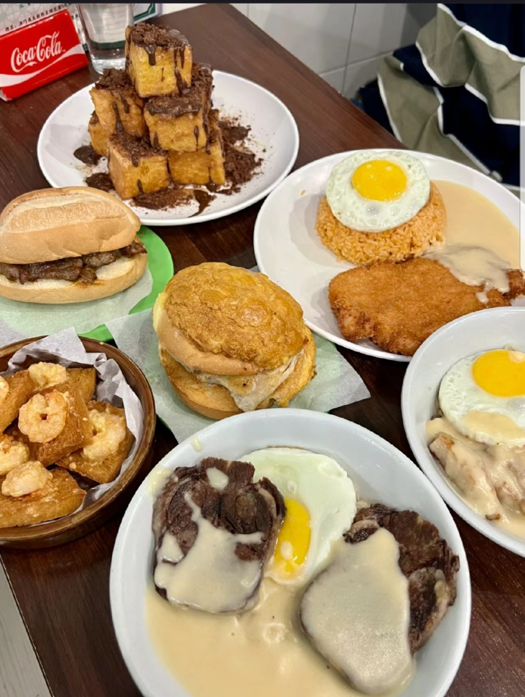 澳門地道茶餐廳,經濟實惠,美食款式多。 招牌三寶:鬼馬西多士、豬頸肉煎蛋撈丁、土炮豬扒包,其他美食有芝士汁牛脷撈面、番茄濃湯牛肉螺絲粉、沙爹牛肉包、芝士牛肉三文治、冰淇淋紅豆冰等。