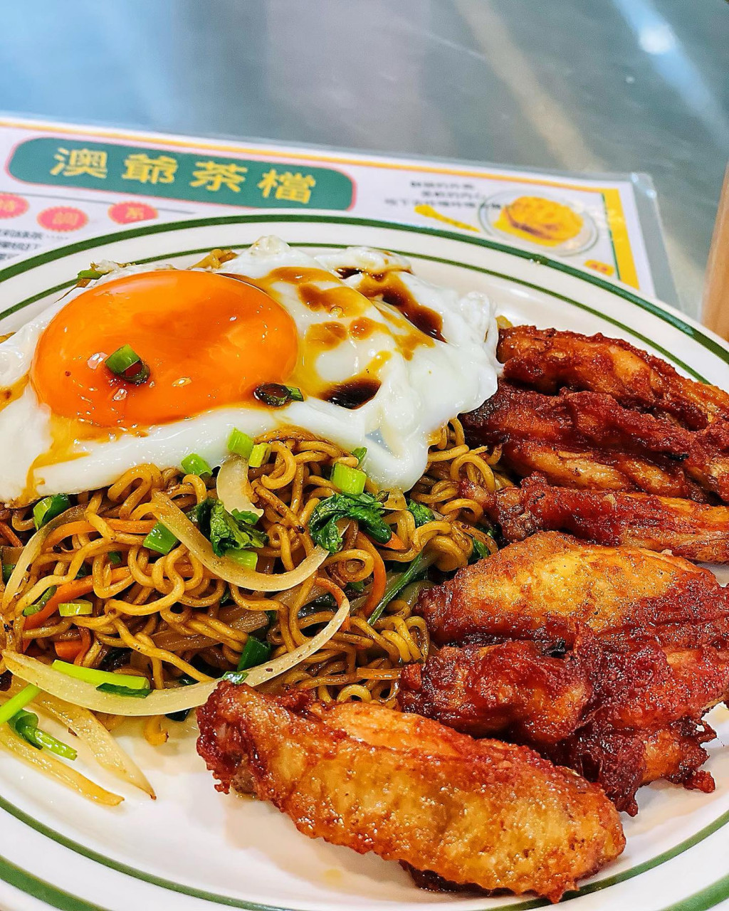 澳門傳統茶記開發創新美食,必吃南乳雞翼太陽蛋炒出前一丁,其他推介有漏奶太極肉松多士、雪山椰脆菠蘿油、雞扒太陽蛋菠蘿包加花生醬,天時暑熱不妨來一杯冰凍陳皮雙檸梳打、生椰檸檬白月光、話梅檸檬可樂、一百益百香果等。