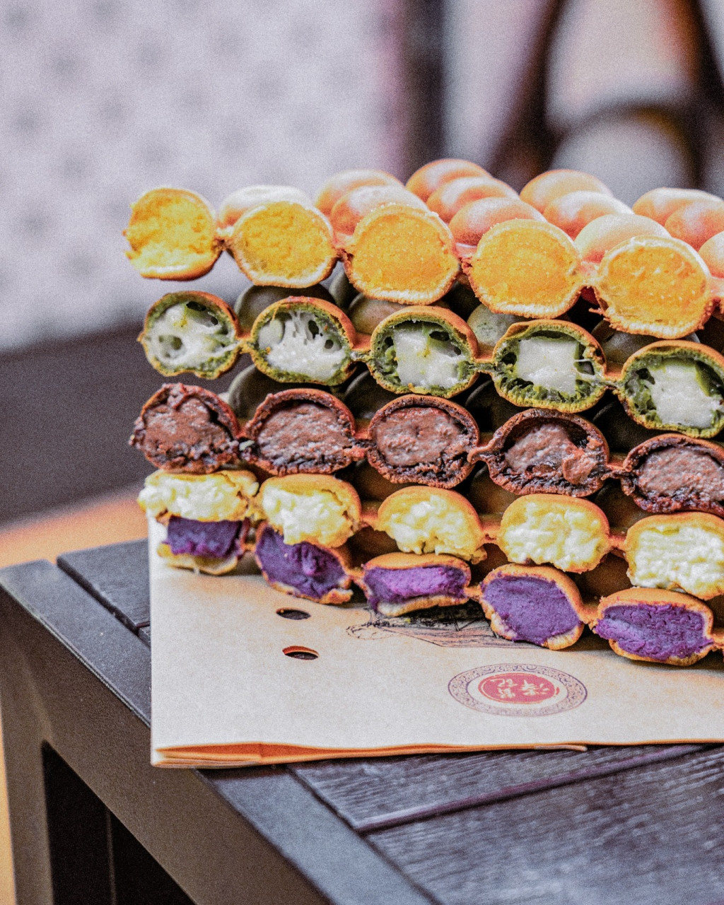 澳門老字號蛋球仔專門店,出品外脆內煙韌,跟傳統雞蛋仔外脆內軟有點不同,天后楊千嬅到澳門也要品嘗。 內餡款式多,必食招牌出品“葡撻蛋球仔”,將澳門名物葡撻結合蛋球仔,蛋味香濃。 其他口味有黑松露芝士、黃金咸蛋、紫薯、流心巧克力。