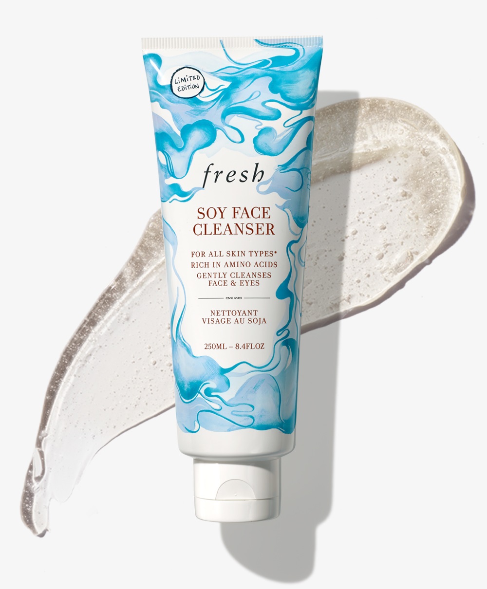 ▲Fresh大豆卸妝潔面乳/HK$420富含氨基酸羥脯氨酸的大豆蛋白,另含有青瓜萃取、蘆薈啫喱和琉璃苣籽油,紓緩及滋養肌膚。
