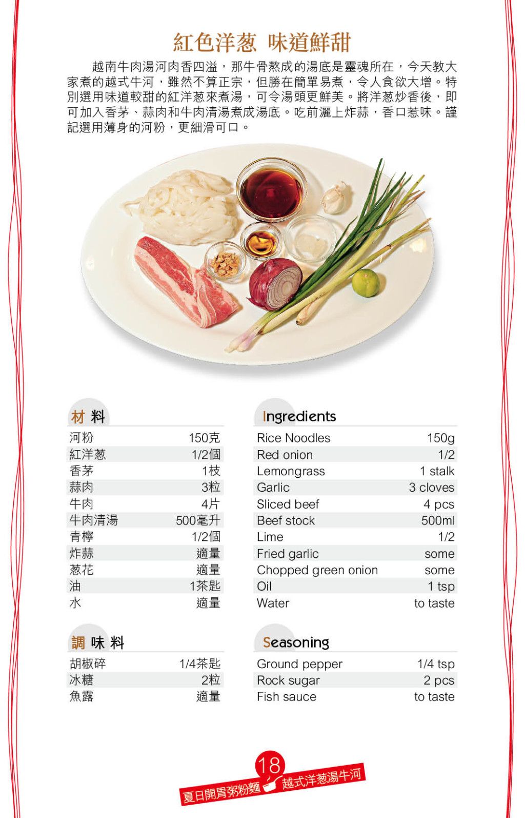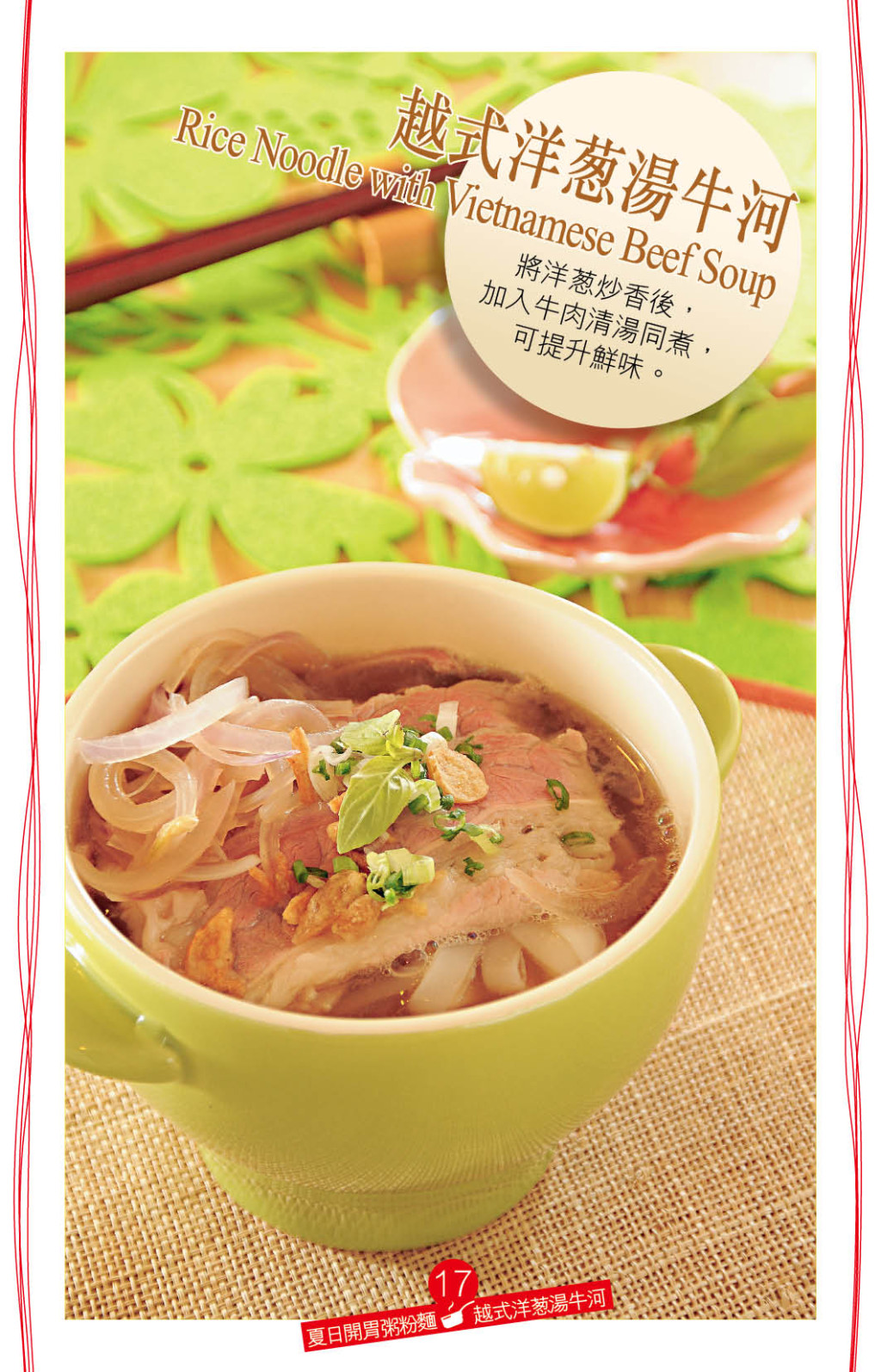 “越式洋蔥湯牛河”味道清新,選用多款地道越南材料烹調,包括香茅、紅洋蔥、青檸、炸蒜、魚露,鮮味又清香。
