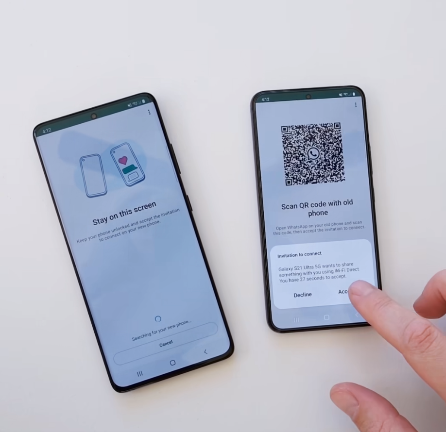 日后轉移WhatsApp聊天對話記錄將會變得更加方便,用戶只需要在舊設備WhatsApp上開啟QR Code,用新手機描瞄即可開始轉移。 舊手機的數據將會直接傳輸至新手機,用戶不再需要將對話內容上載到云端,又再下載到新裝置。