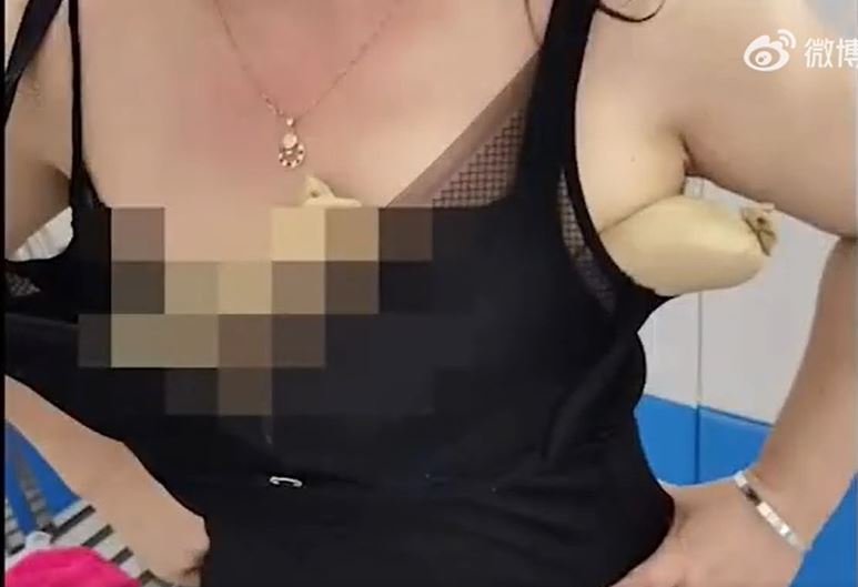 ▲女子將蛇收藏在胸部下企圖偷運過關。