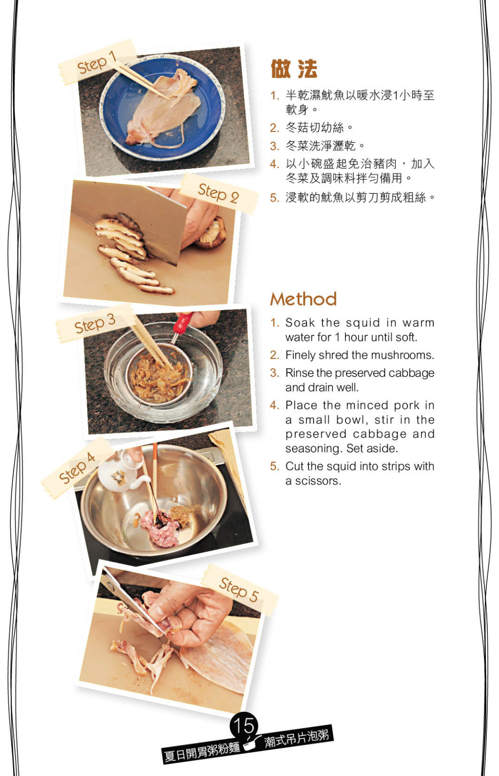 ▲豐富材料包括干濕魷魚、冬菇、冬菜、中國芹菜、芫荽碎,再配搭免治豬肉。