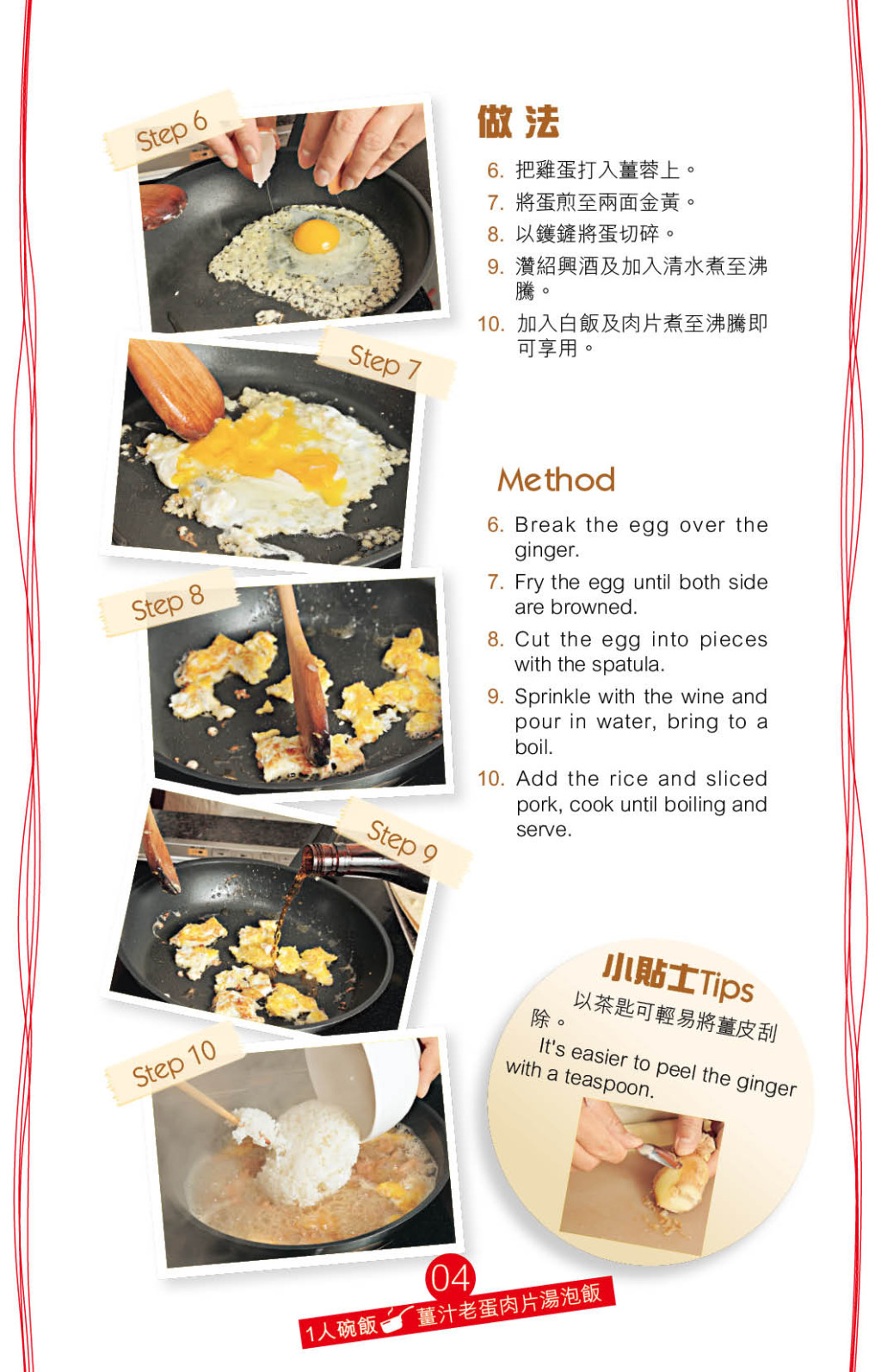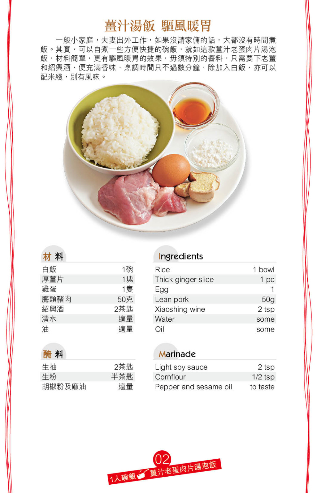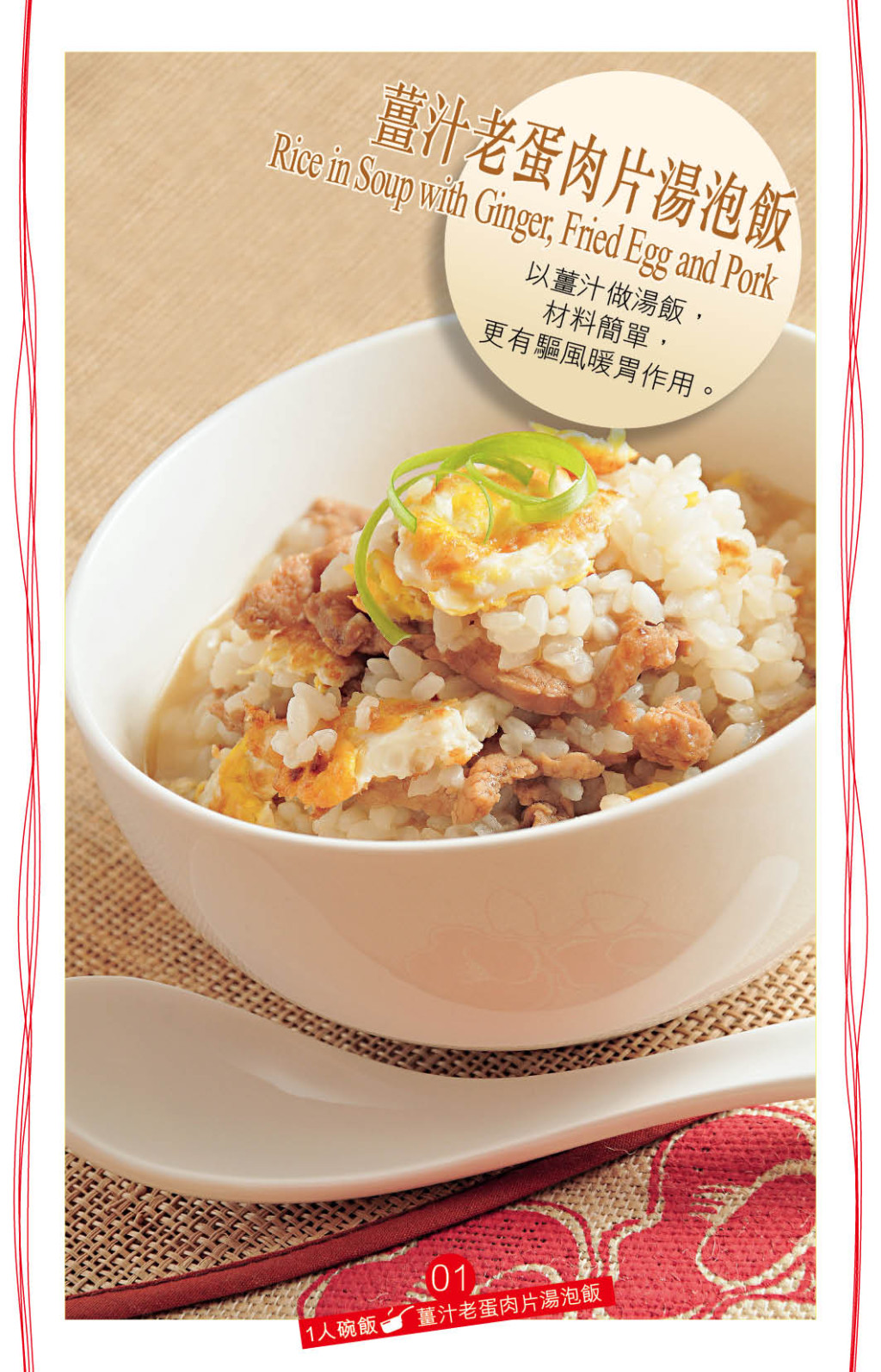 ▲“姜汁老蛋肉片湯泡飯”帶一點客家姜酒蛋風味。