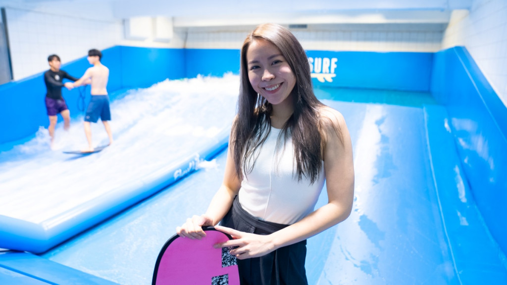 滑浪場采用歐美和日本大熱的Flowride技術﹙如同海洋公園水上樂園﹚,其雙滑道沖浪機能隨時調節,控制水流輸出不同強度,無論想玩臥式還是站立式滑浪,抑或是初學者至高手,也可以滿足到。想試玩沖浪的朋友,小編建議選臥式,整體效果像沖浪外,也較容易掌握平衡,所以很適合新手練習。有點基礎的話,可試玩需更高平衡力的站立式,玩法跟Wakesurf有點相似,也可想象為水上玩滑板,惟有一不同之處或需適應,就是Wakesurf是靠船的尾波推動前進,而Flowride的玩法則是波浪由人工波浪制造器創造,水流會從前方打出來,所以波浪的波幅和速度會更加穩定。
