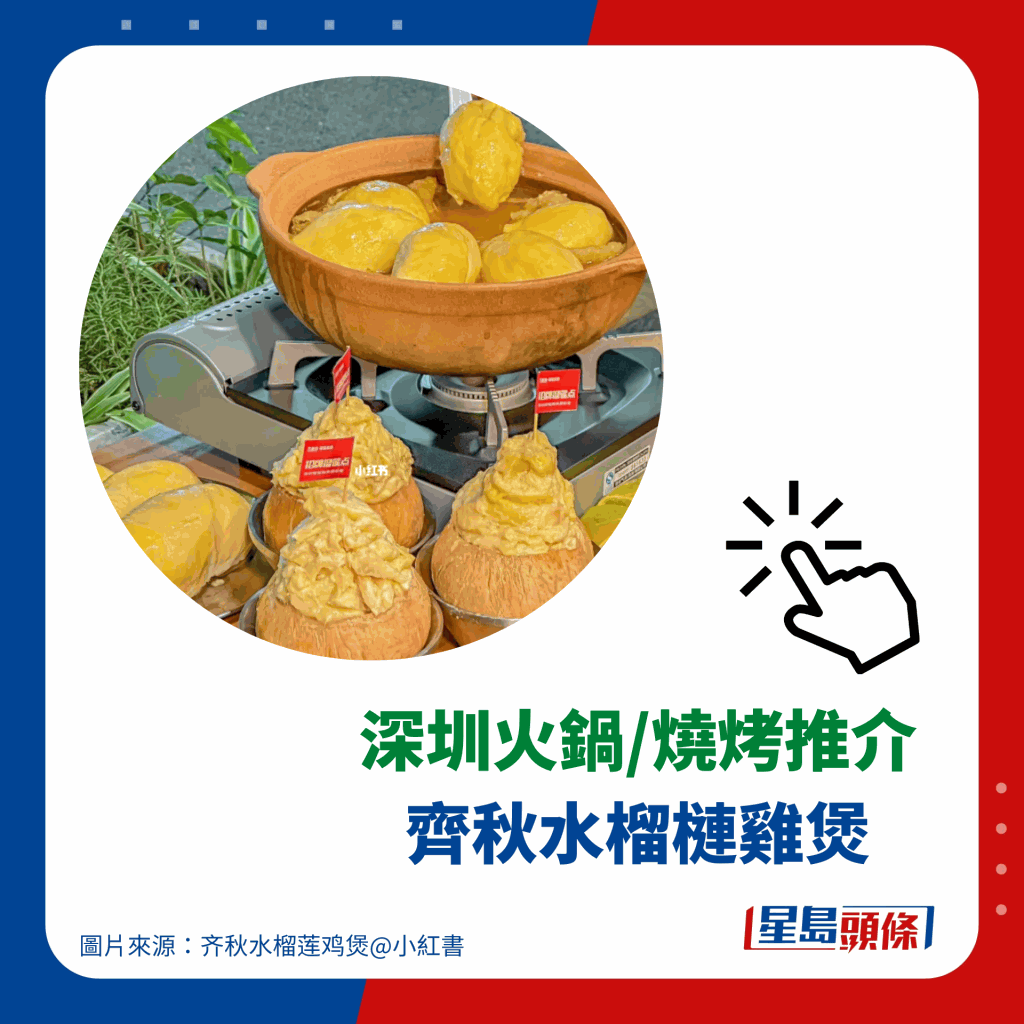 深圳美食2023|火鍋推薦 2. 齊秋水榴蓮雞煲 炭火榴蓮香氣四溢