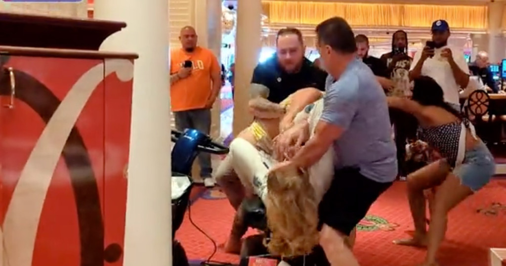 綜合《每日郵報》等報道,事發于7月9日下午6點左右,地點在美國拉斯維加斯賭場酒店(Wynn hotel)范圍內,當時場內正舉行撲克牌大賽,但賭桌旁的這場四女MMA(綜合格斗)似乎更引起大家注目,有人用手機把過程拍下,迅即在網上瘋傳。