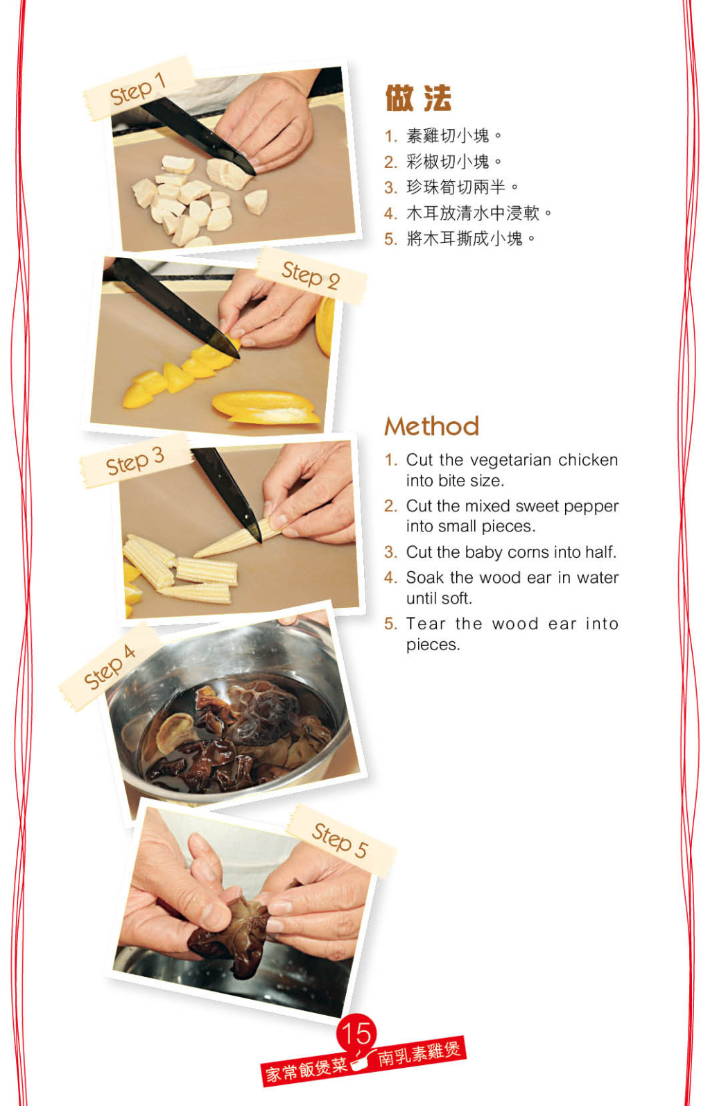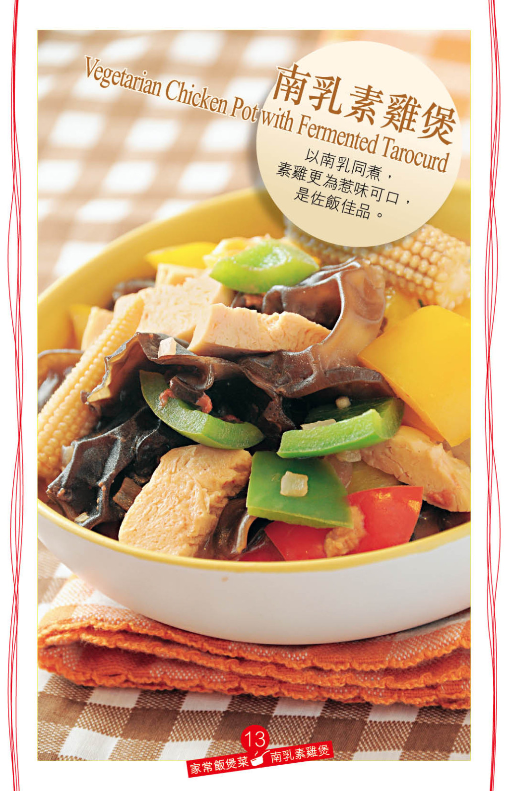 傳統中式素菜多用南乳作調味,用電飯煲烹調這道“南乳素雞煲”,同樣惹味香濃,秘訣是先爆香南乳,再加入蔬菜炒勻及下調味料煮熟即可,另外糖是必備調味料,可以中和南乳咸味及提升鮮香。