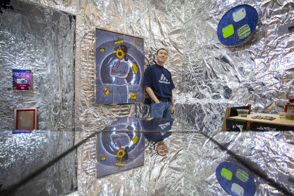 張子言本身色盲,看紅、綠會偏色,如加了一層濾鏡,是次展出的作品,他偏偏用上不少橙色,坦言在調色控制上有一定的難度。敢于挑戰自己,除想表達對火星的想象外,他更希望以藝術創作感染他人,包括像他一樣曾經誤染毒癮者,“那時的人生很渾噩,沒有目標,直至戒毒后搬到灣仔,接觸多了左鄰右里,結交多了朋友,在與人交往過程中讓我獲得溫暖與啟發?!敝毖运囆g讓他如重啟人生,故他希望借作品為身邊人及社區帶來一點影響,“我的作品充滿矛盾,這些矛盾會教人反思,明白任何人都有一套固定想法,我希望大家能在作品中萌生新的念頭,從而看到希望?!?/p>