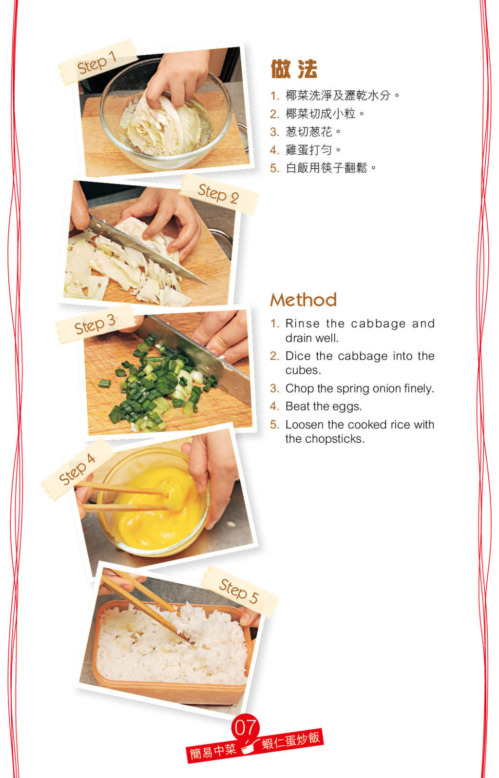 做炒飯的材料配搭多元化,“蝦仁蛋炒飯”是經典口味。這個食譜除了加入鮮蝦及雞蛋外,還加入椰菜絲豐富口感及均勻營養,味道鮮香??呻S意加入不同配料,如牛肉、豬肉或海鮮等,又可加入青豆、粟米、燈籠椒等蔬菜,想增加咸鮮香味,可以加少許蝦醬調味。
