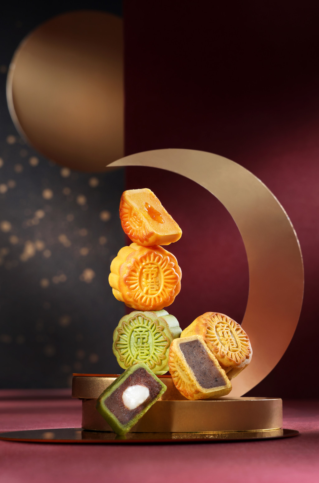 售價:五福臨門月餅尊尚禮盒/$528/盒,包括經典雙黃白蓮蓉月餅/1個、雙黃陳皮紅豆月餅/1個、綠茶菠蘿桃山月餅/2個、養生柑桔桃山月餅/2個、清新莓果桃山月餅/2個