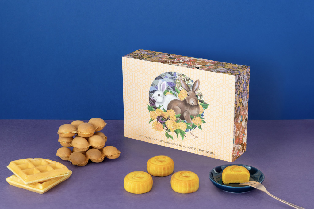 ▲香港維港凱悅尚萃酒店聯乘北角著名“利強記雞蛋仔”,推出以經典街頭小食“雞蛋仔”及“格仔餅”為主題的月餅禮盒。