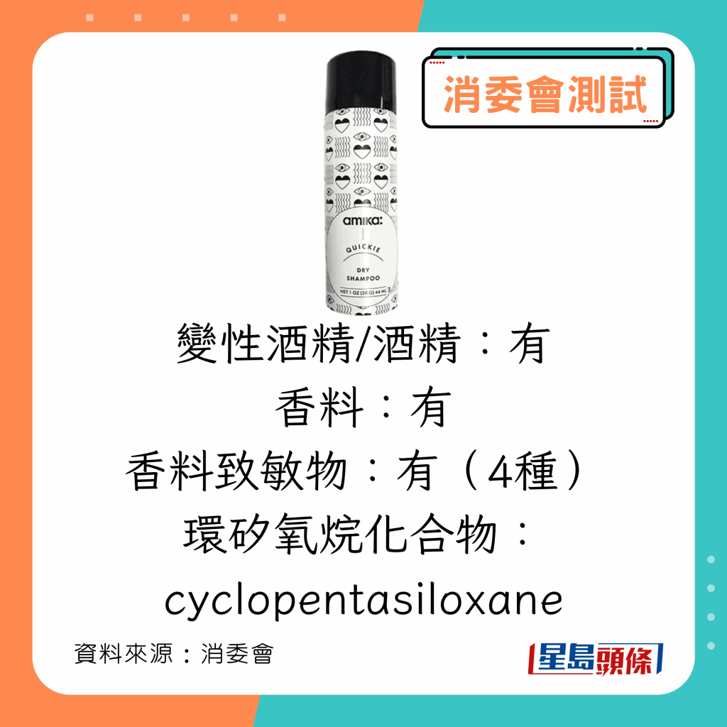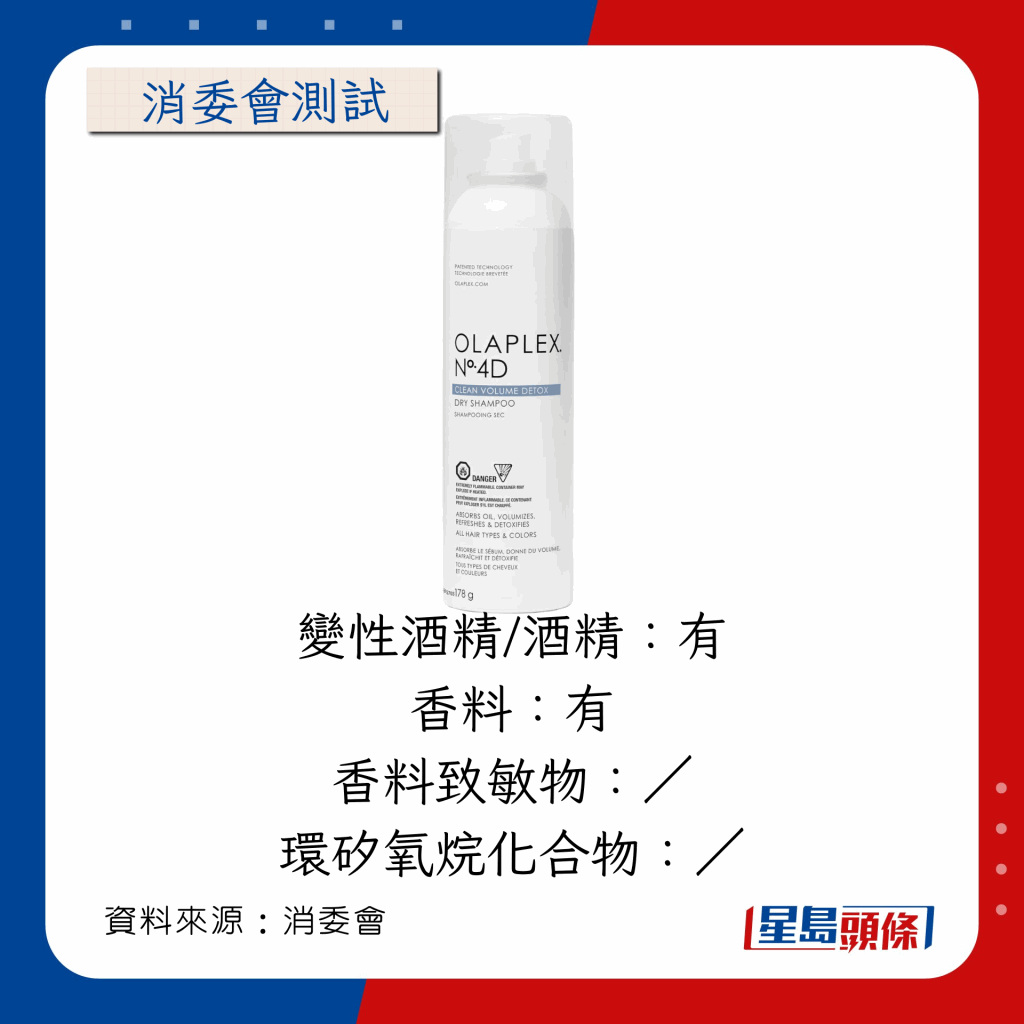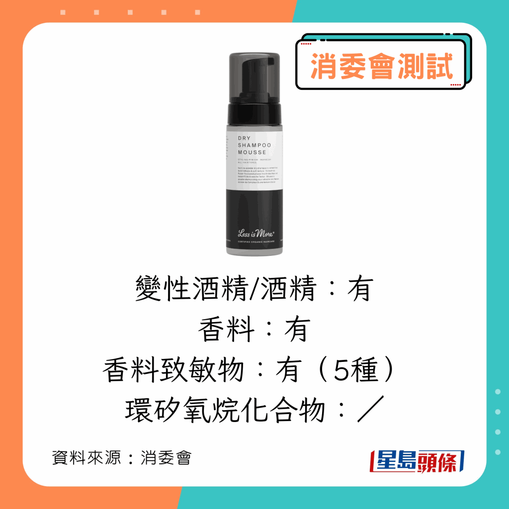 消委會是次檢視的樣本中,11款壓縮氣罐產品全部標示含丙烷、丁烷、異丁烷,或氫氟碳化合物152a等石油氣氣體成分,當中有4款同時標示含有環硅氧烷化合物D5及/或D6。雖然海外研究指出并非所有壓縮氣罐裝產品都存有高濃度苯,而本會檢視的壓縮氣罐樣本中亦不是全部都標示含有環硅氧烷化合物,而現時亦沒有證據顯示間中使用免沖水洗發產品會對人體產生危害,但以安全和環保等考慮因素,消委會建議消費者盡量減少使用含石油氣氣體成分和環硅氧烷化合物的產品,改用其他配方較簡單的免沖水洗發產品。