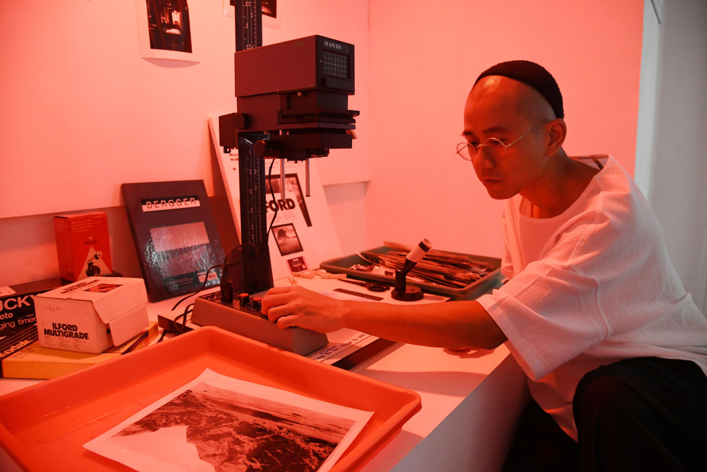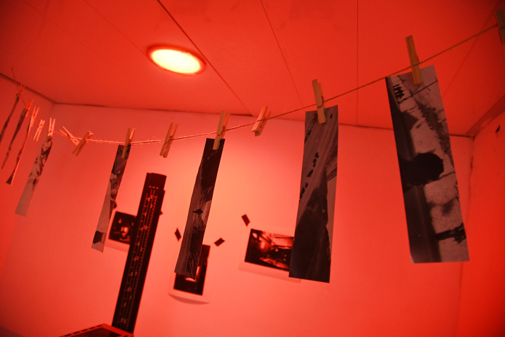 ▲展覽場地特辟一角裝置成曬相的黑房空間,當中正展示了阿揚的攝影作品。