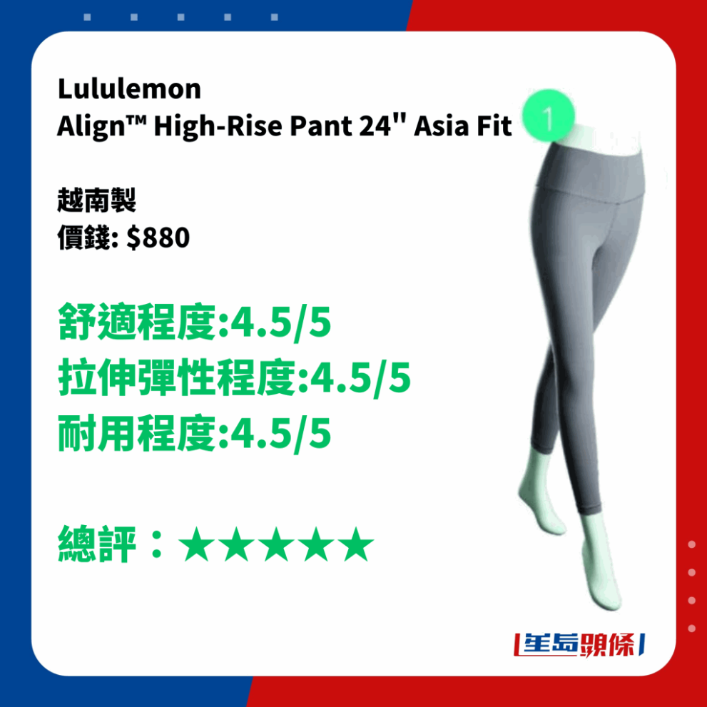 20款瑜伽褲的售價由 $149至$980 不等,價錢相差極大。 而在測試中,獲滿分評分的是$880的貴價貨,不過價錢親民的品牌表現亦不俗,其中一款 $149 的運動褲亦獲 4.5星高分。