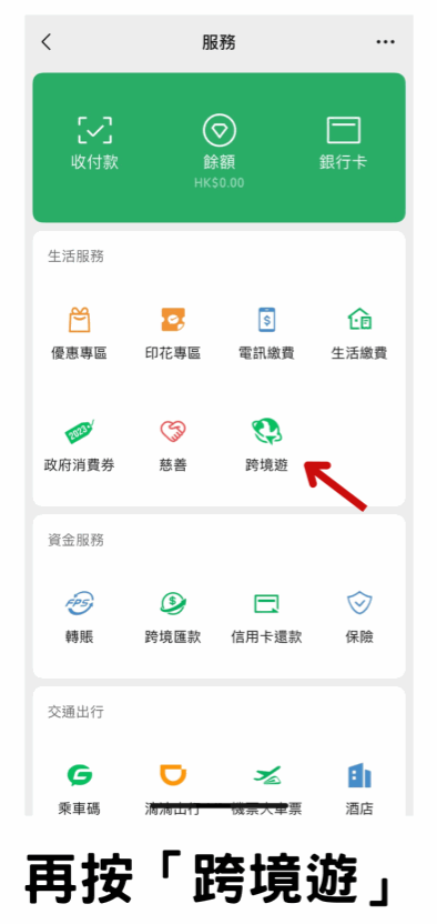 WeChat Pay HK推出全新“跨境游”頁面,WeChat微信用戶只需點擊“我”,再選擇“服務”,按下“跨境游”,即進入詳細頁面列表,當中有逾100個小程序,包括海關旅客指尖服務、身份認證、跨境交通、內地交通、住宿門票;此外還有預購飲品、甜品小食、快餐、美食,甚至連超市便利店都有,集合喜茶、海底撈、鮑師傅、太二酸菜魚等多個港人至愛的餐飲熱點。