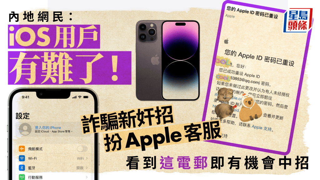 近日有網民懷疑自己墮入新型詐騙案。該網民日前在家中玩手機的時候,突然收到蘋果公司的電郵,指她成功更改了新密碼,并在電郵內附加連結查看。事主聲稱自己從未更改密碼,覺得疑惑便點擊連結查看。點擊連結后,系統要求她輸入手機屏幕密碼,事主照做。進入連結后又要求事主輸入蘋果帳戶(Apple ID)及驗證碼,事主照做了。最后系統彈出要求輸入新密碼,事主才頓覺不對勁,懷疑自己墮入新型詐騙案,擔心已輸入的密碼會因此洩露,在小紅書發文求救,以“iOS用戶有難了!”為題,提醒其他用戶中招。