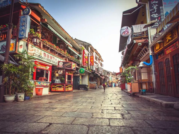 陽朔縣城內最古老的街道,有1400多年的歷史。這里曾是孫中山先生演講的地方,藝術大師徐悲鴻也曾居于此。在這里,既能感受到“小青瓦、坡屋頂、馬頭墻、木門窗、吊陽臺”式的桂北特色民居,還能嘗到相當地道的“桂菜之魂”。