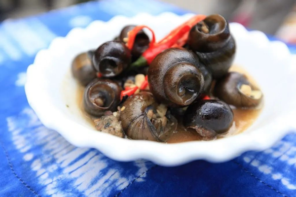 在陽朔,一直有“無釀不成席”的說法,田螺釀就是其特色釀菜之一。田螺里面的肉不全是螺肉,而是“螺肉+豬肉”,輕輕一嗦,里面的肉餡和湯汁就被吸入口中,令人回味無窮!