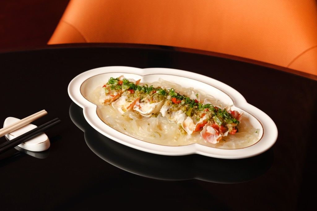 ▲日本帝王蟹腳肉涼皮 ($698),以肥美帝王蟹腳肉加涼皮及燒椒醬煮至剛熟,蟹肉鮮甜惹味。