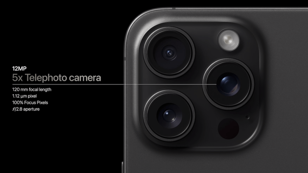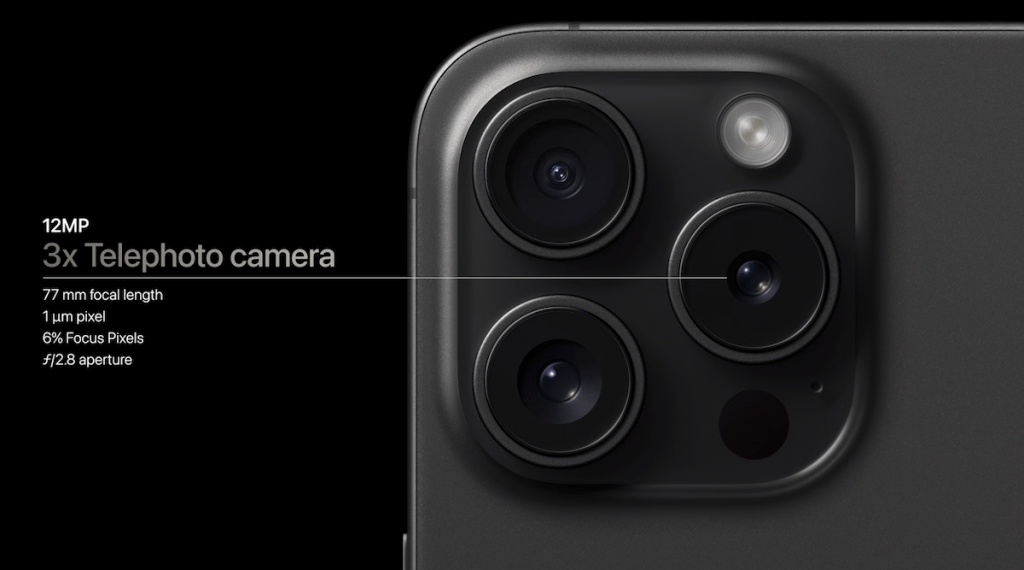 ▲iPhone 15 Pro沿用12MP的3倍光學變焦鏡。